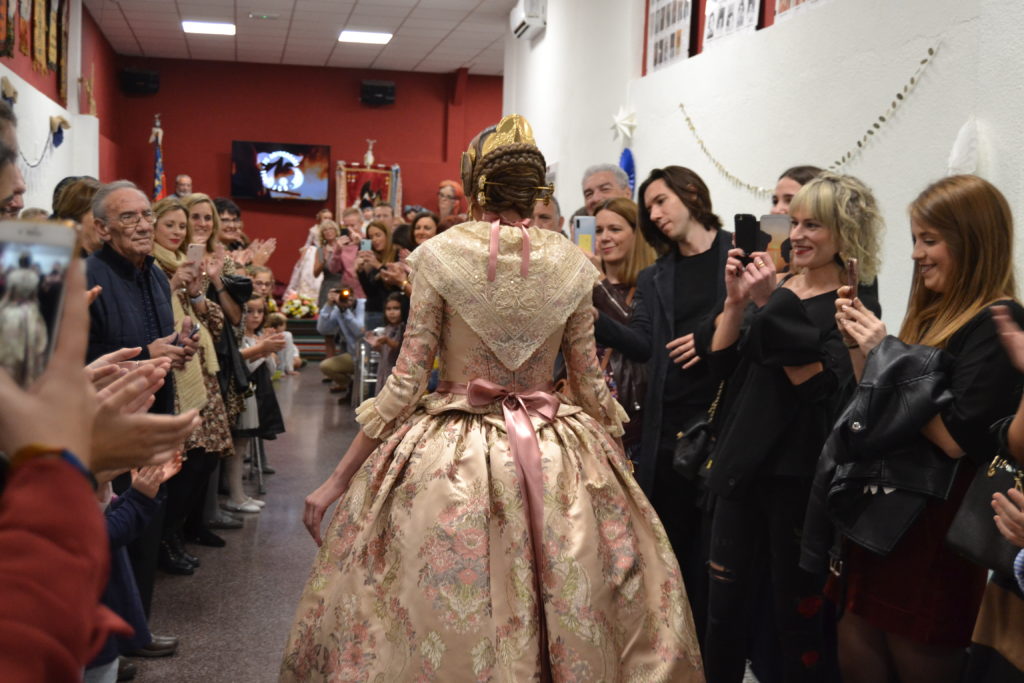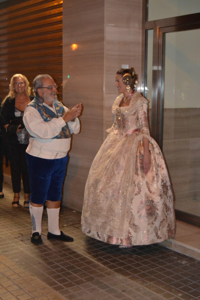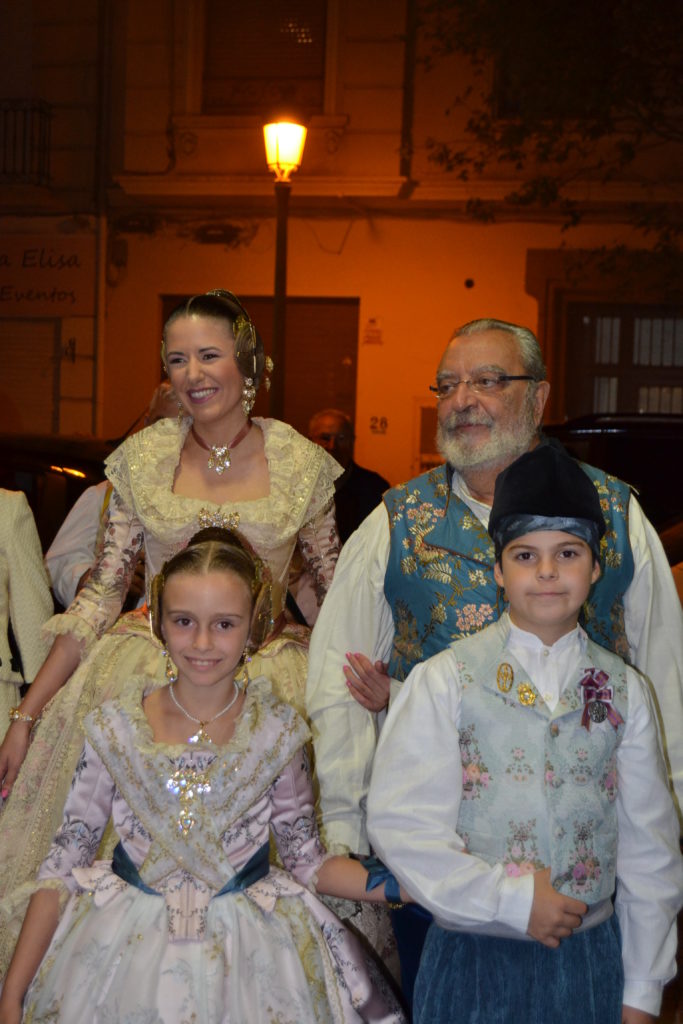 Desde las 20 horas nos juntamos todos los falleros en las puertas de nuestro casal para ir a recoger a las que ya son nuestras Falleras Mayores de un ejercicio tan especial como el de nuestro 75 aniversario: la señorita Celeste Martí Femenía y la niña Mar García Ballester.