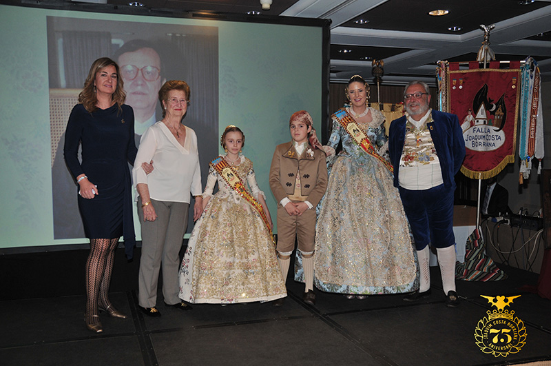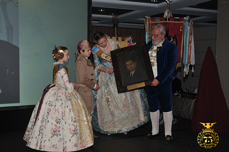 Tras la bienvenida, se realizó un recuerdo a todos los Presidentes de nuestra comisión que ya no están con nosotros, y cuyos familiares recibieron como reconocimiento de todos sus años dedicados a la Falla. Los familiares de D. Salvador Genovés, Fundador de nuestra Comisión, nos obsequiaron con un retrato de nuestro primer Presidente que ahora preside nuestro casal. Y la hija y esposa de nuestro querido D. Miguel Mayol nos dedicaron unas palabras con mucho cariño.